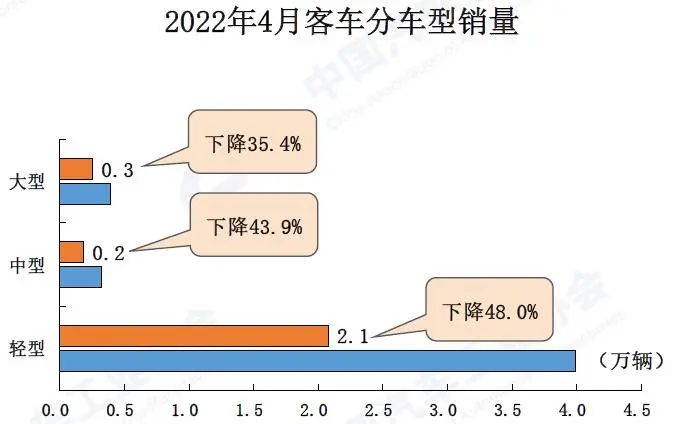 4月,輕型客車銷2.1萬輛,同比下降48%;1-4月,輕型客車?yán)塾?jì)銷9.7萬輛,同比下降29%。